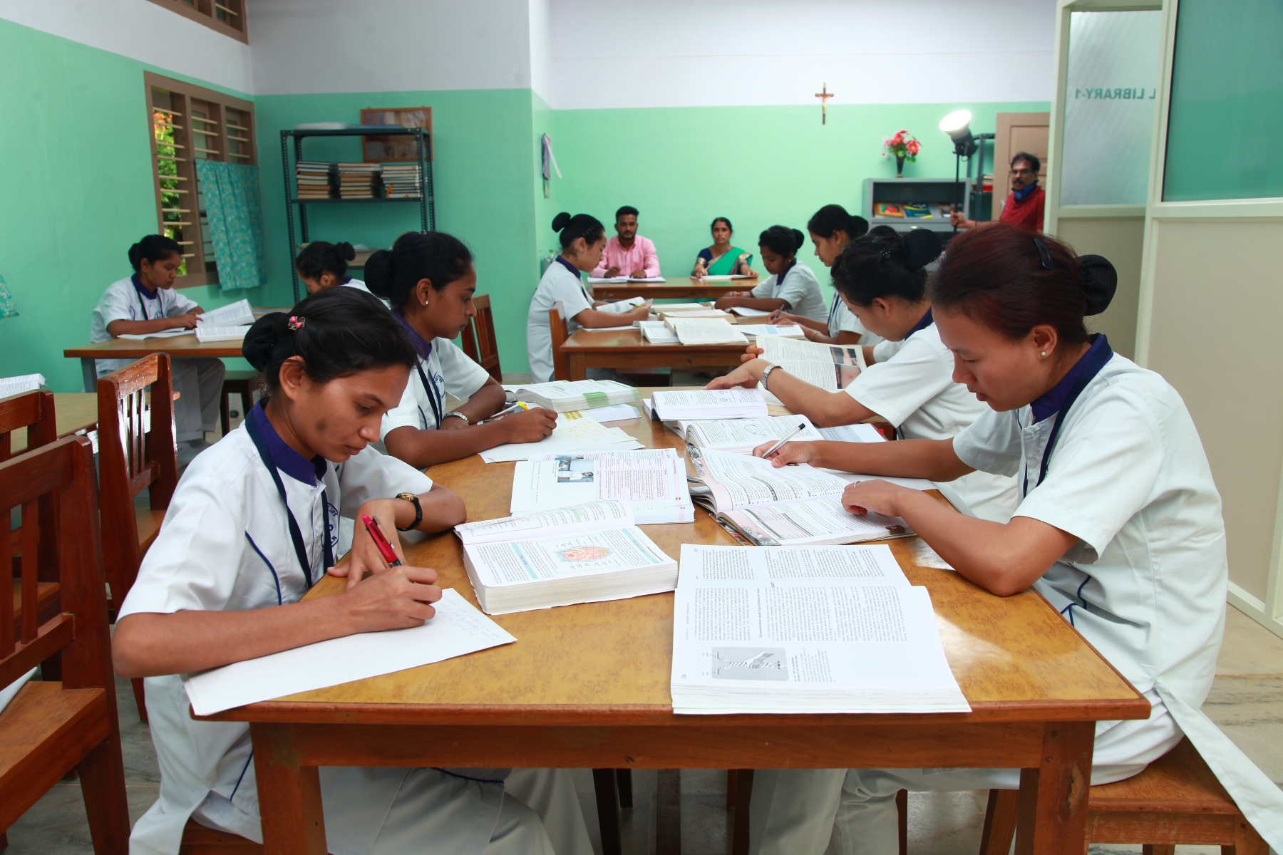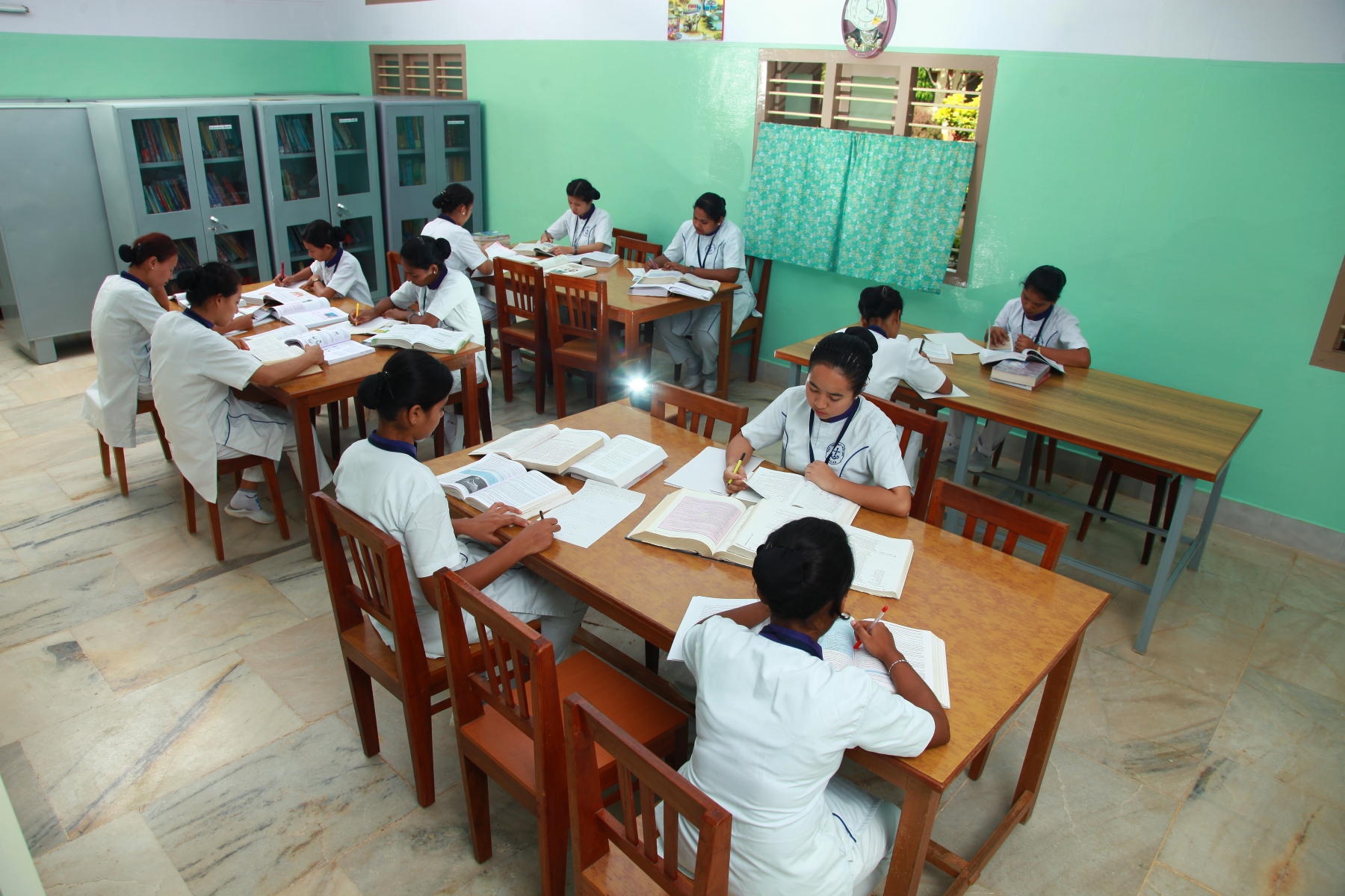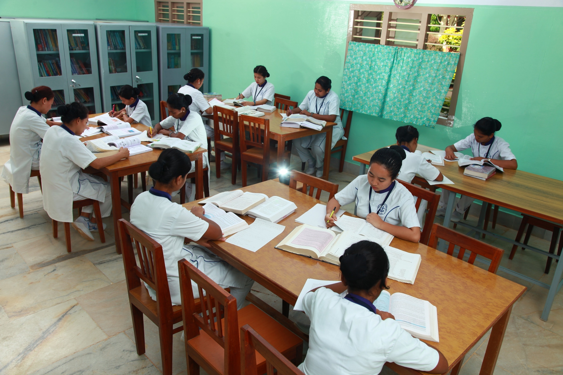 Holy Cross Nursing College Library is a store house of knowledge having a collection over 25 years stocking more than 3000 Medical and Nursing titles and several nursing publications. Computers with Internet facilities and printing facilities are also available. The library has facility for RGHUS Helinet