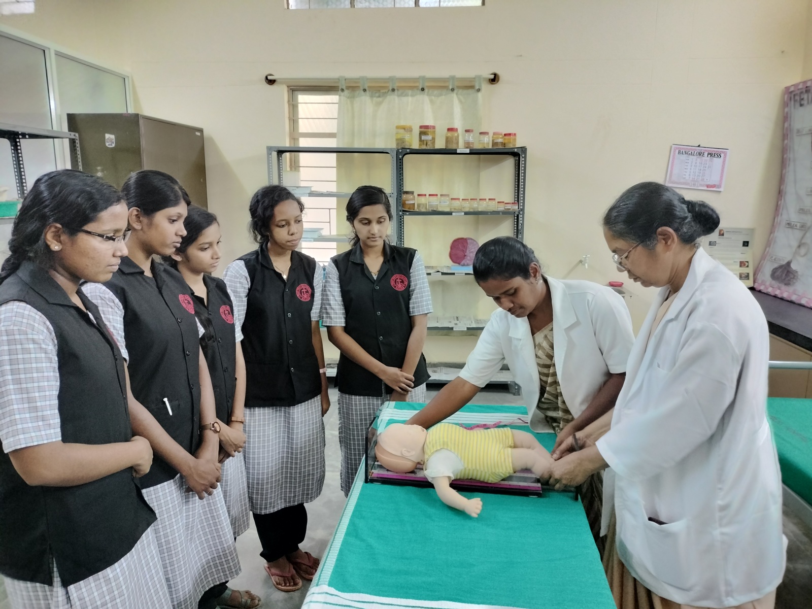 In Pediatric laboratory students develop their basic skills of child health nursing procedures before the exposure to clinical area. This lab is equipped with pediatric manquines, various models to manage normal and emergency situation of child health. Our laboratory has more than 100 articles to demonstrate the procedures related to child health care. Students get opportunity to practice Resuscitation procedures in babies before they go to the clinical area.