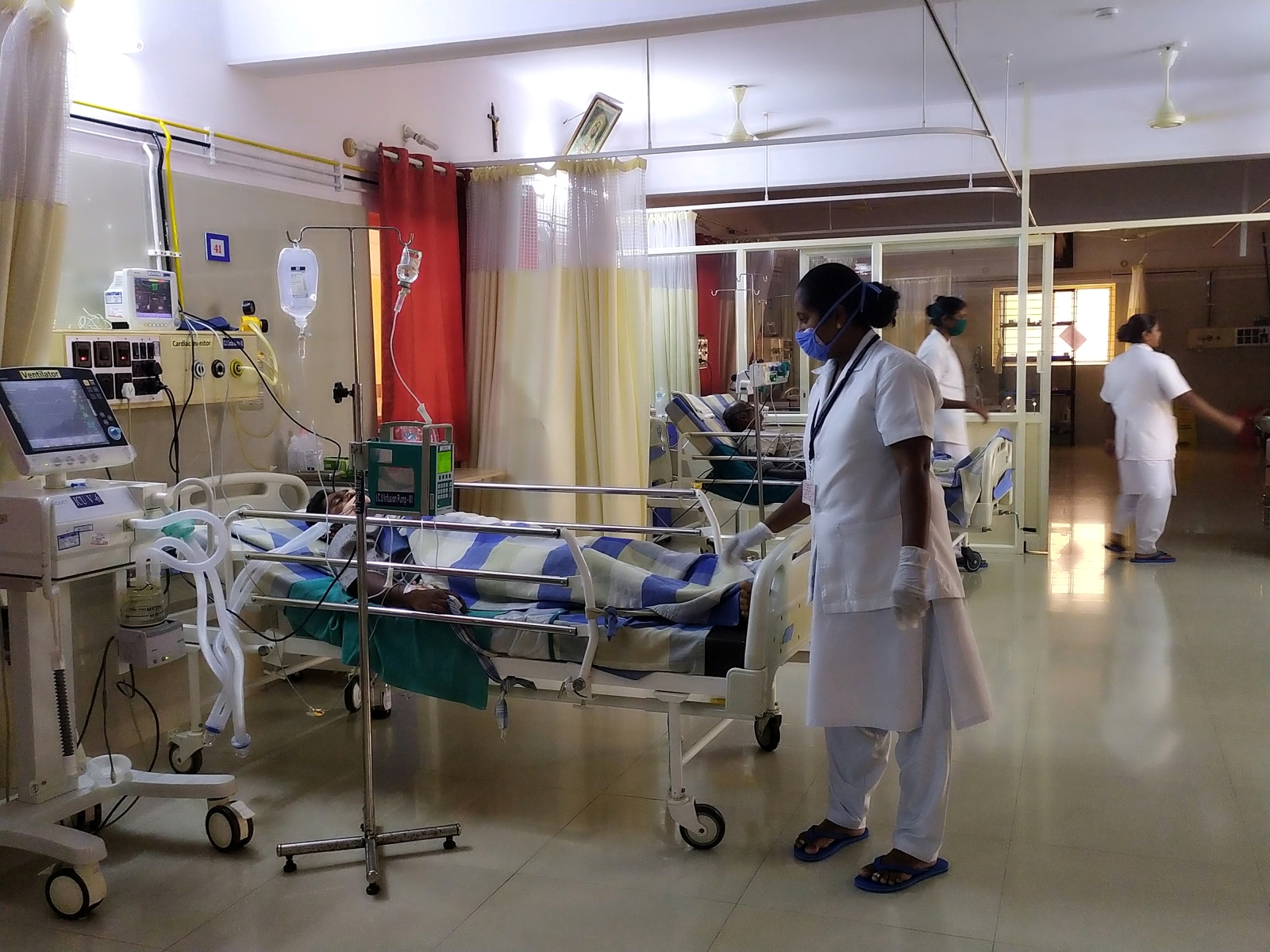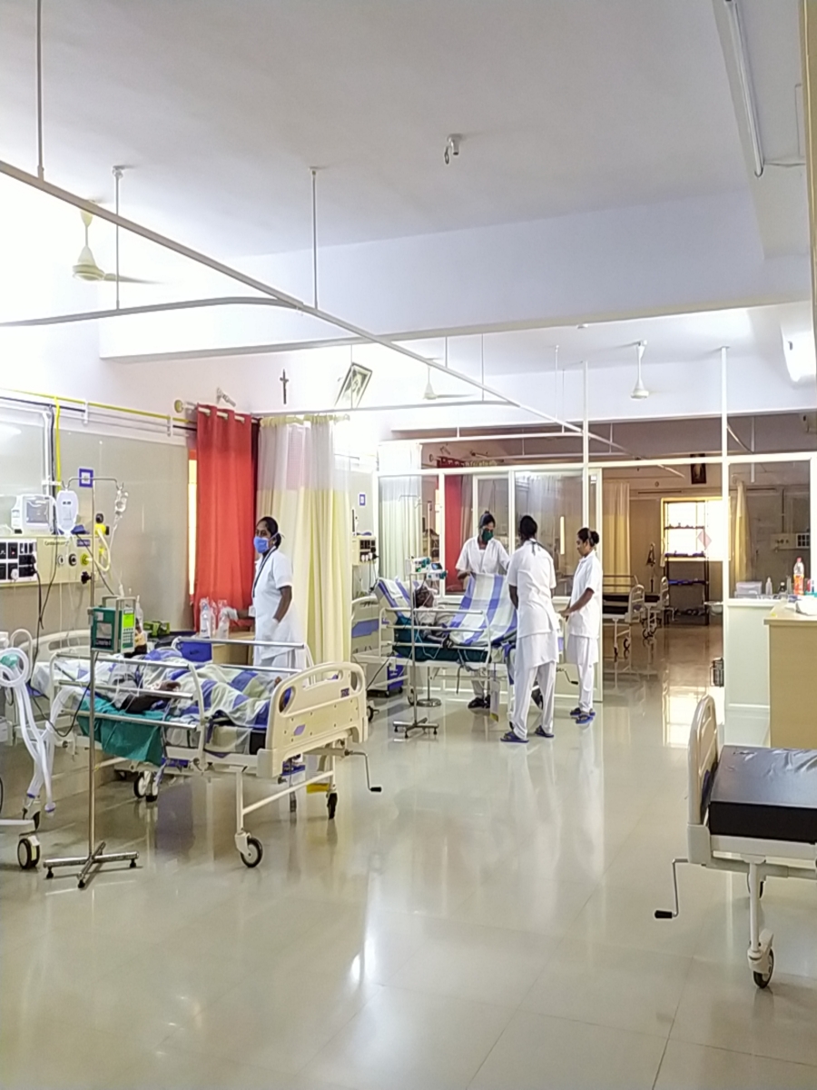 Students gain their clinical experience in Holy Cross Hospital, Kamagere, NABH accredited hospital . Students are provided with rich clinical experience in the ward by bedside rounds, demonstration, case presentation, drug study, nursing rounds, clinical teaching, etc. Students are guided by tutors and charge nurses. Students will be assigned for patients and allowed to provide nursing care within their permissible limits and skill learnt. This being a referral Hospital critically ill patients are admitted an treated. ICU and NICU has got advanced machineries and equipments.
